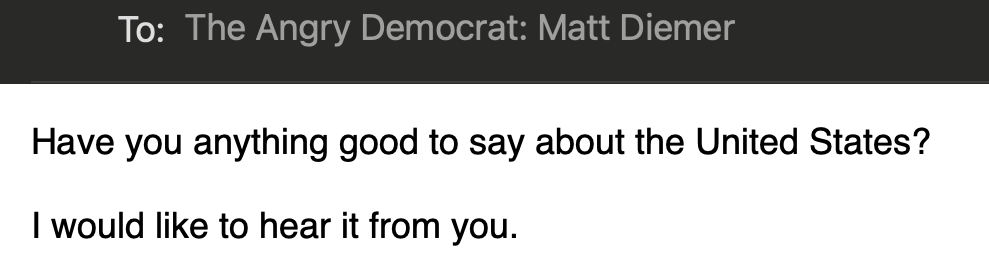 I do not know if you noticed the title, The Angry Democrat. That is not an accident.