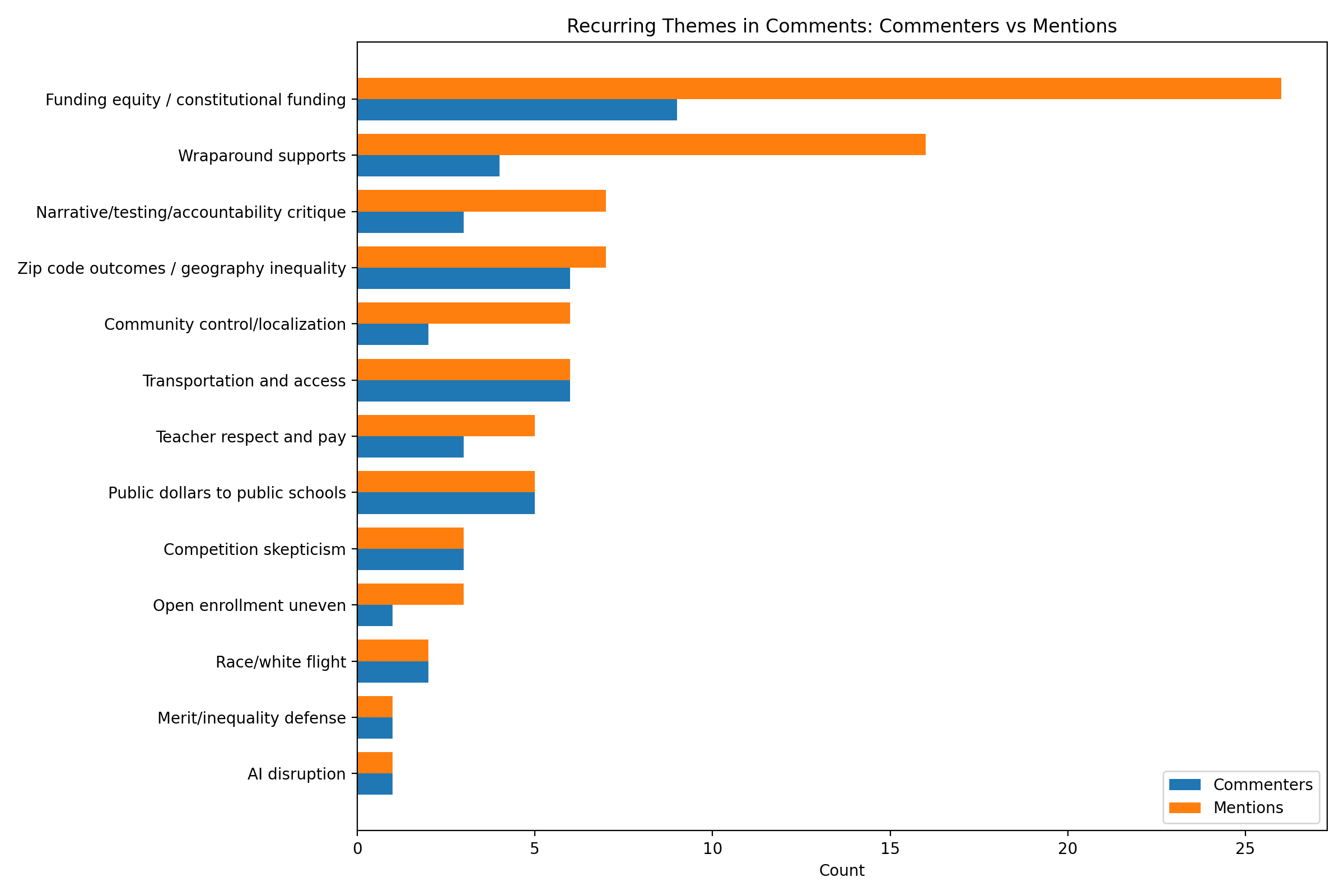 Raised by: Dr. Christina Collins, Rebecca, Cathy, PeterPublic dollars should stay in public systems (anti-private, anti-charter, voucher skepticism tied to privatization)