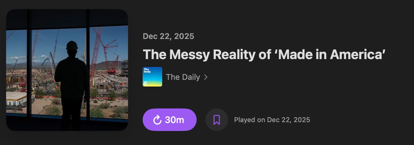 The episode from The Daily by the New York Times on TSMC’s Arizona chip facility perfectly captures the problem. On paper, this project was supposed to be proof that America could build again. A massive semiconductor fab, backed by federal subsidies, national security urgency, and bipartisan support.